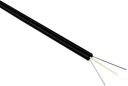 KABEL TYPU DROP, dedykowany surowym zastosowaniom w systemach dostępowych. Wyróżnia się wzmocnioną konstrukcją, zawierającą dwa stalowe pręty usztywniające wewnętrzny światłowód OS2, co zapewnia lekkość, wytrzymałość oraz odporność na warunki atmosferyczne oraz zginanie.