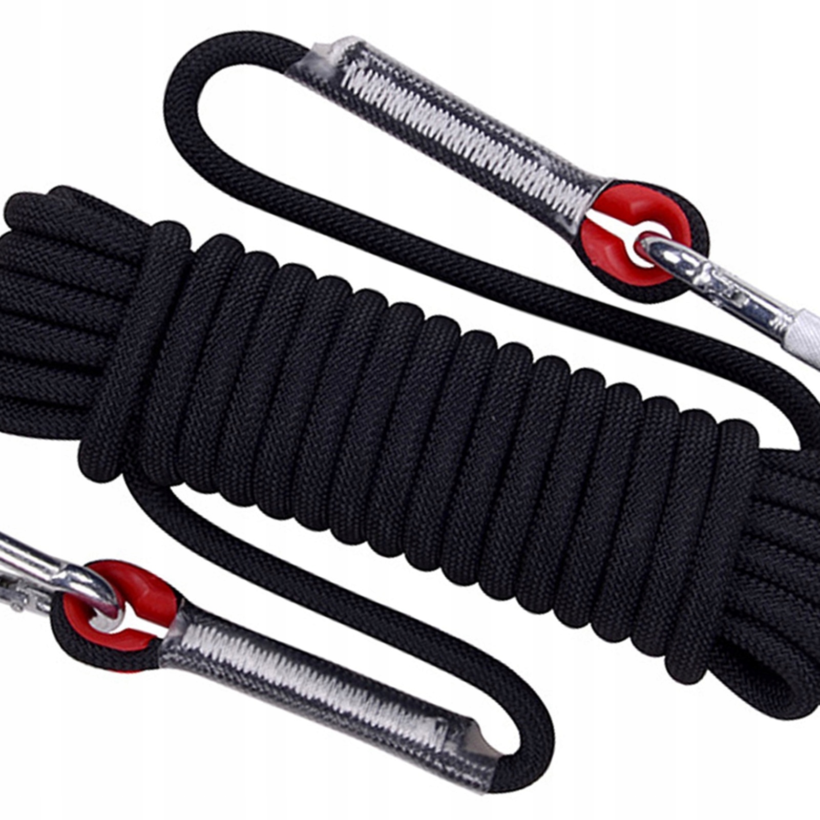 Веревка для скалолазания 12 мм 10 м черная с двойными стальными пряжками пешие прогулки кемпинг