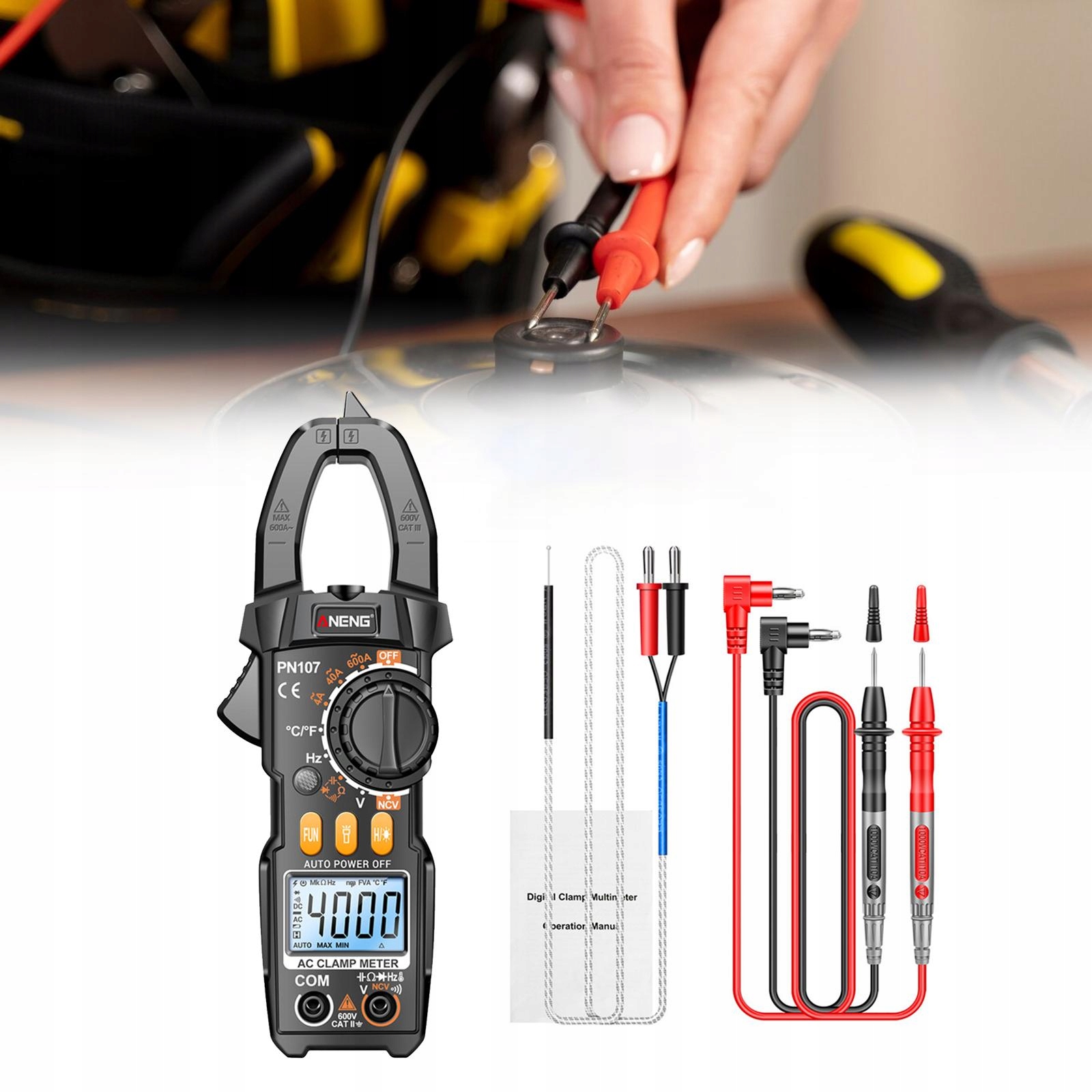 Miernik cęgowy Multimetr Ręczny multi tester Amperomierz DC do pojazdów Strona główna Czarny