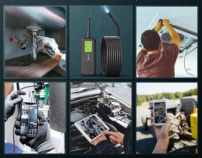 Широкий спектр применения; камера осмотра трубы может быть широко использована для проверки автомобильной техники, проверки домашнего ремонта, проверки бытовой техники, осмотр канализационных труб и туалетов и для других возможных применений.