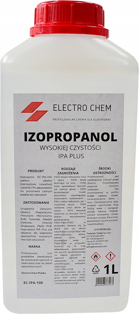 Alkohol Izopropylowy nadaje się także do oczyszczania układów elektronicznych i optyki, gdyż nie powoduje ich uszkodzeń dzięki odpowiedniemu stopniowi parowania i odpowiednim właściwościom chemicznym. IPA świetnie oczyszcza układy z kurzu i zanieczyszczeń, a następnie ulega odparowaniu pozostawiając elementy czyste i suche, co przekłada się na ich dłuższą żywotność i redukuje ryzyko przepalenia.