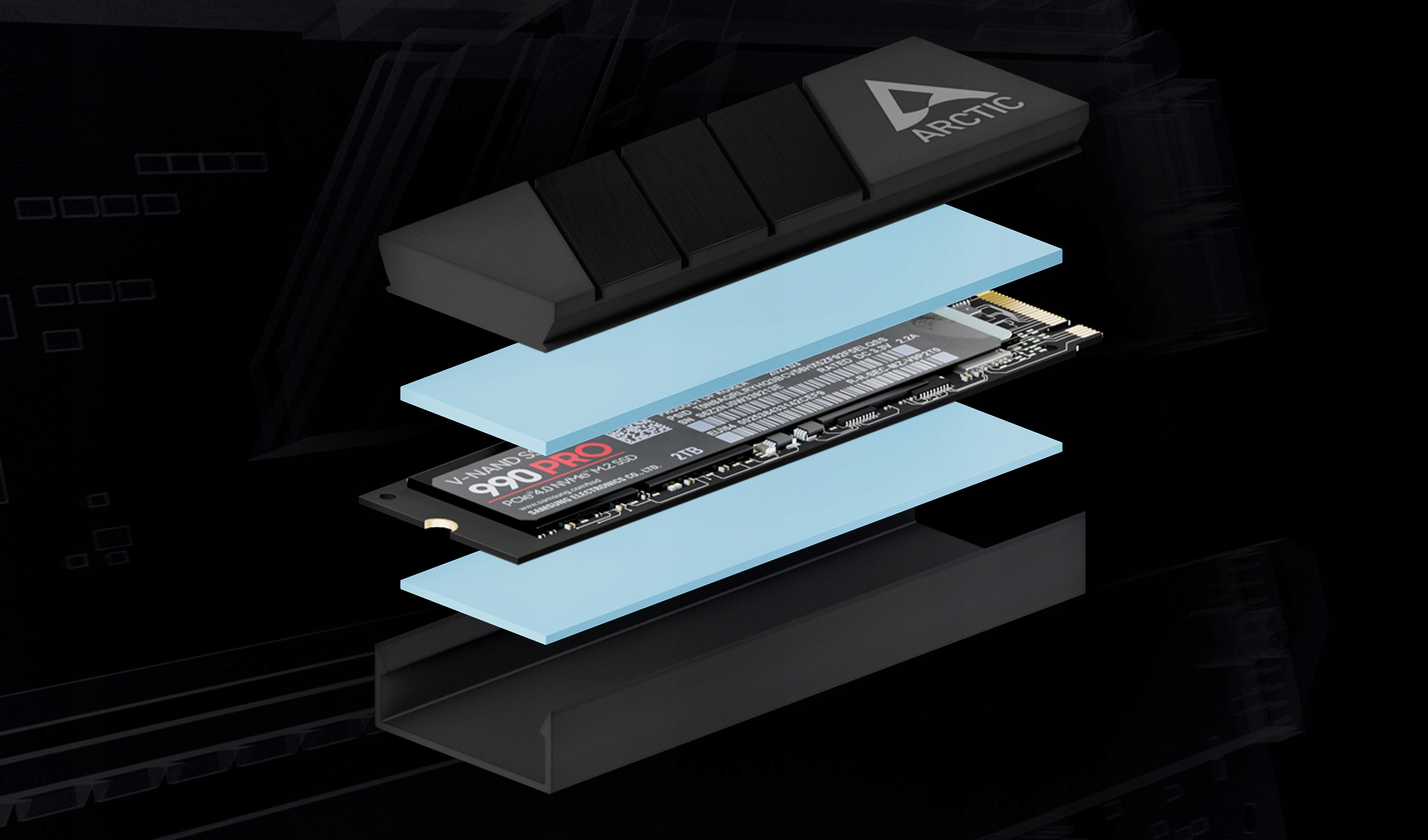 Dzięki dodatkowej masie ARCTIC M2 Pro skutecznie odprowadza ciepło z chipów i oddaje je do otoczenia. Powoduje to mniej nagrzewający się dysk SSD i szybsze chłodzenie.