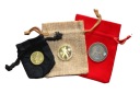 Na 4 od końca zdjęci przykładowo dołożono monety o średnicy 27 mm , 32 mm oraz 38,6 mm na woreczkach jutowych .