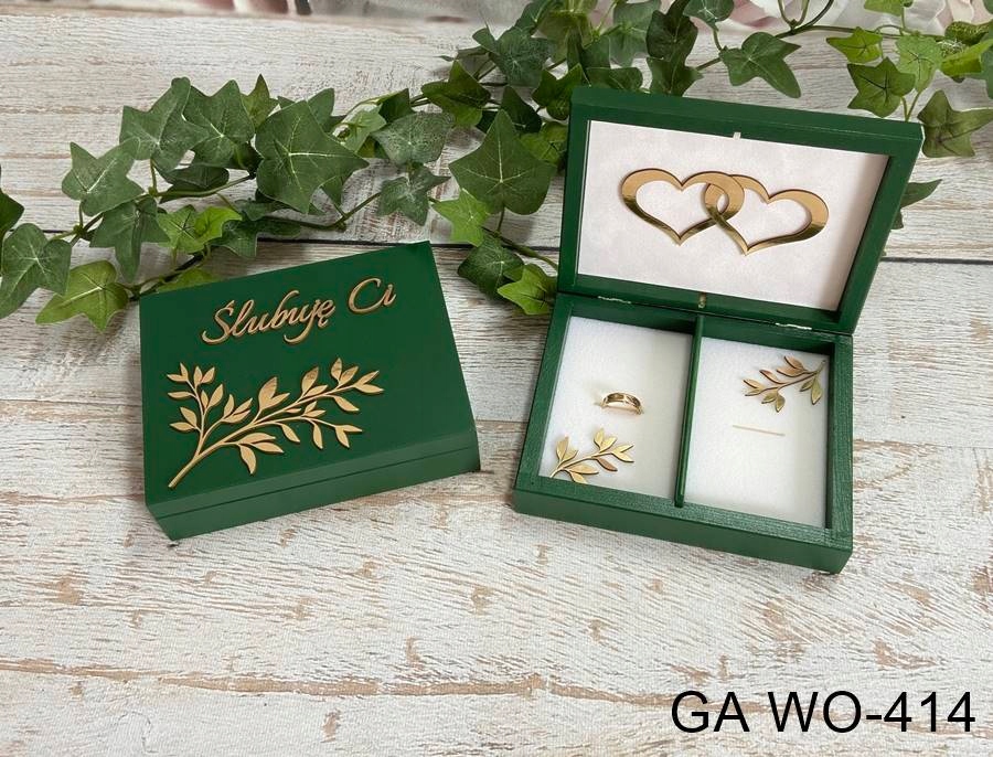 Pudełko na obrączki butelkowa zieleń złote gałązki