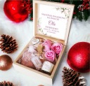 Elegancka, personalizowana skrzynka prezentowa z dedykacją dla świadkowej jest wypełniona uroczymi upominkami na "romantyczne lub błogie wieczory".