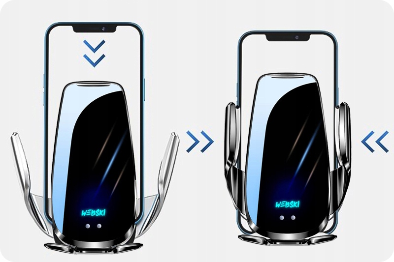 ✔️ Wbudowany czujnik otwiera automatycznie uchwyt, kiedy zbliżysz do niego telefon. Następnie się automatycznie zamyka. Nie musisz już nic wciskać, nic dociskać ani blokować. Wystarczy zbliżyć telefon do uchwytu . Ładownie telefonu podczas jazdy nigdy nie było prostsze!