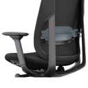 Oparcie tego krzesła biurowego posiada funkcję pozwalającą na regulację wysokości podparcia odcinka lędźwiowego, w ten sposób łatwo dopasowując oparcie do anatomicznego kształtu pleców człowieka. To, co go wyróżnia, to funkcja regulacji głębokości, która pozwala dostosować podparcia do własnych preferencji i potrzeb w zakresie komfortu.