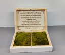 W środku box ma 2 komory, wypełnione stabilizowanym, poduszkowym mchem. Na tej miękkiej podusi z mchu połóż swoje obrączki. Pod wieczkiem jest sentencja - Hymn o miłości.