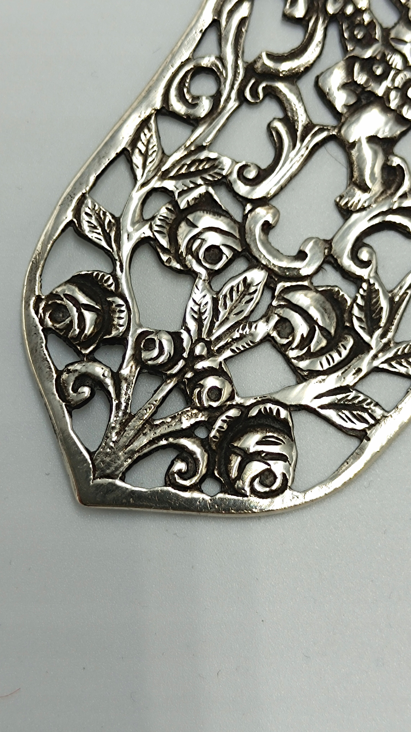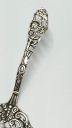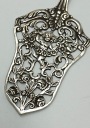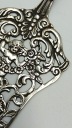 Przedstawiamy niesamowicie kunsztowną łopatkę ażurową do ciasta lub tortu wyprodukowaną przez firmę HANAU wykonaną w całości ze srebra próby 800. Przepiękna rękojeść z motywem kwiatowym oraz nabierak z motywem aniołka co jest bardzo charakterystycznym elementem dla tej marki prezentuje się bardzo wytwornie i elegancko. Punca znajduje się z drugiej strony łopatki.