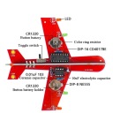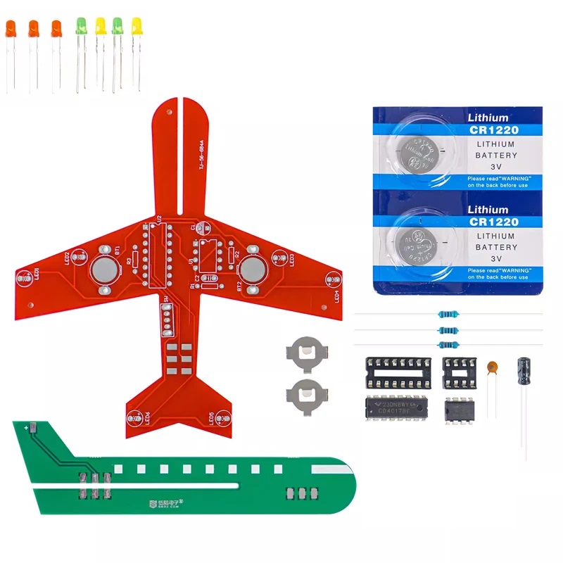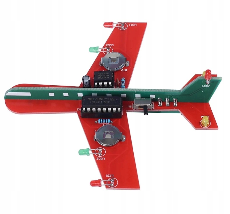 Po zmontowaniu układu i włożeniu baterii diody led zaczną mrugać i naśladować światła jak w prawdziwym samolocie.