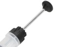 Wysysarka wyposażona jest w 2 specjalne elastyczne wężyki o długościach 215mm i 225mm o średnicy 6mm oraz 4mm, które wprowadzasz w otwór wlewu oleju. W ten sposób dotrzesz praktycznie do każdego zbiornika oraz wydłużasz możliwości robocze strzykawki. Dodatkowo do wężyków dołączone są zatyczki, które zapobiegają przed rozlaniem zawartości.