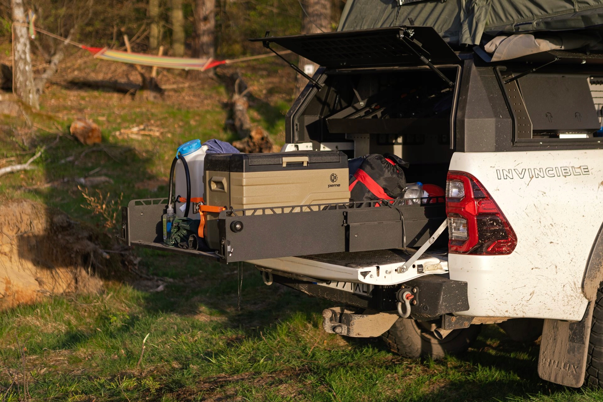 Wymiary platformy to 140 x 104 x 25 cm (wymiary wewnętrzne przestrzeni ładunkowej: 139 x 89 x 24 cm).
