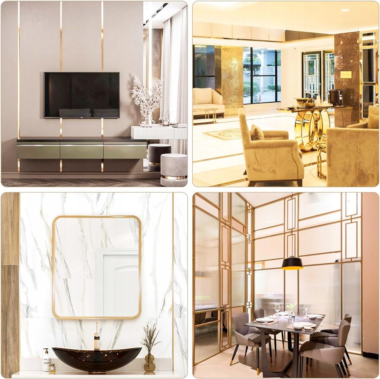 Скрытие швов - при установке керамической плитки или панелей, золотая декоративная лента может быть использована для элегантного покрытия затирка между ними. Это придает комнате целостный вид, избегая при этом проблемы видимых щелей или неприглядных щелей.