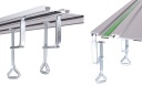 W zestawie znajdują się dwie prowadnice o długości 70cm, dwa dedykowane zaciski montażowe oraz łącznik szyn umożliwiający prace w pełnym zakresie długości szyny- 140cm