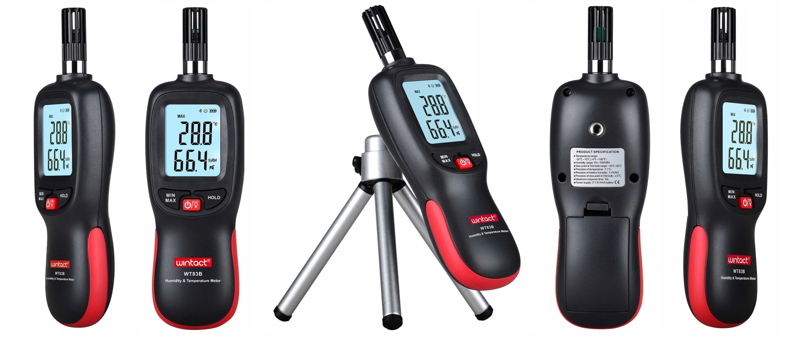 Higrometr WT83B marki WINTACT cechuje się wysoką precyzją, szybkim odczytem danych oraz wysoką stabilnością.