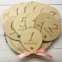Drewniane tabliczki karty do zdjęć dokumentujące pierwsze miesiące życia Twojego dziecka. Tabliczki wykonane są metodą laserową. Ręcznie szlifowane.