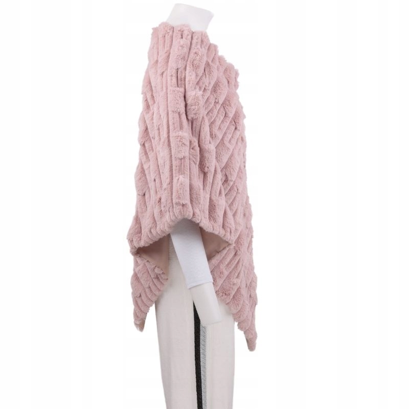 RÓŻOWE PONCZO DAMSKIE CIEPŁE Z FUTERKIEM ZIMOWE ELEGANCKIE