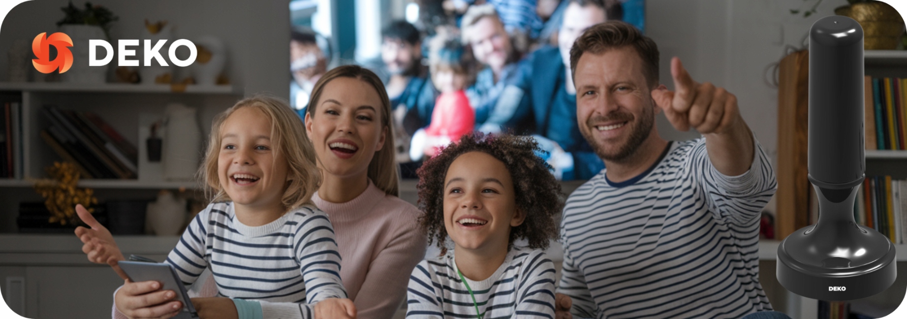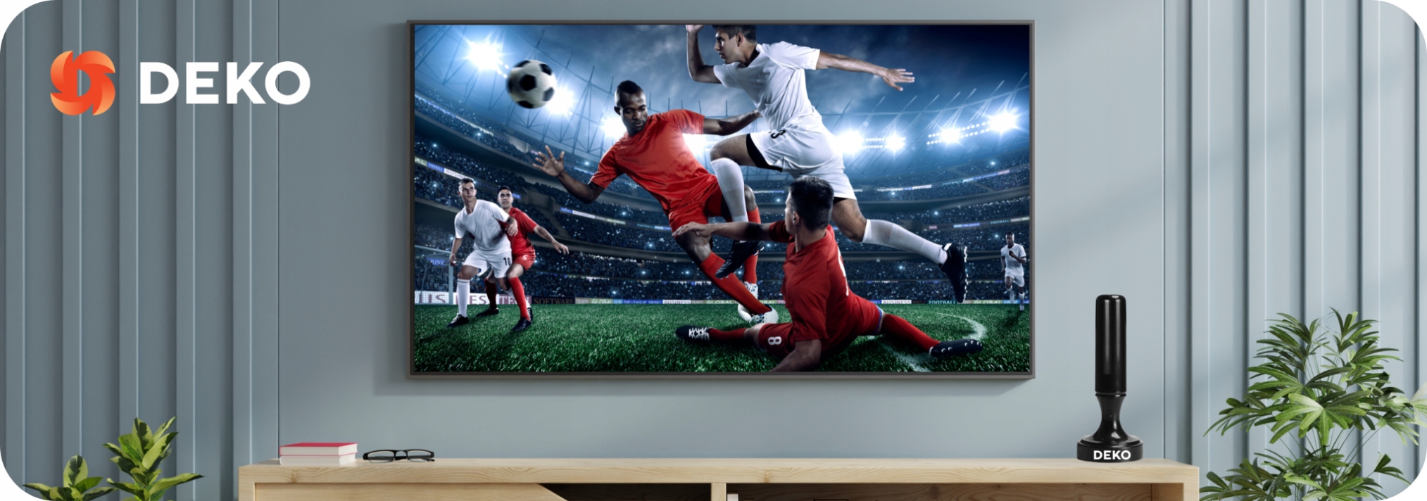 ✦ Antena pokojowa wewnętrzna DEKO DVB-T2 HEVC to innowacyjne rozwiązanie, zapewniające doskonałą jakość obrazu i dźwięku.