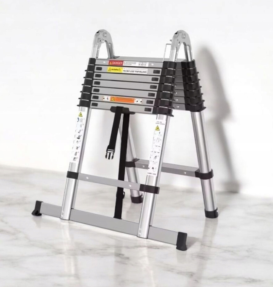 Rewelacyjna aluminiowa drabina,bardzo prosta w rozkładaniu i składaniu .Można ją stawiać na schodach w kształcie litery A, jak również pod kątem 90 stopni i wykorzystywać jako podest roboczy.