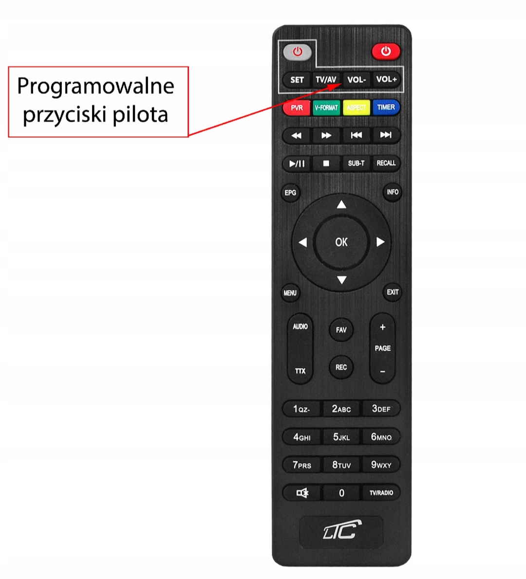 Pilot posiada możliwość zaprogramowania 4 przycisków: TV/AV, VOL-, VOL+, POWER.