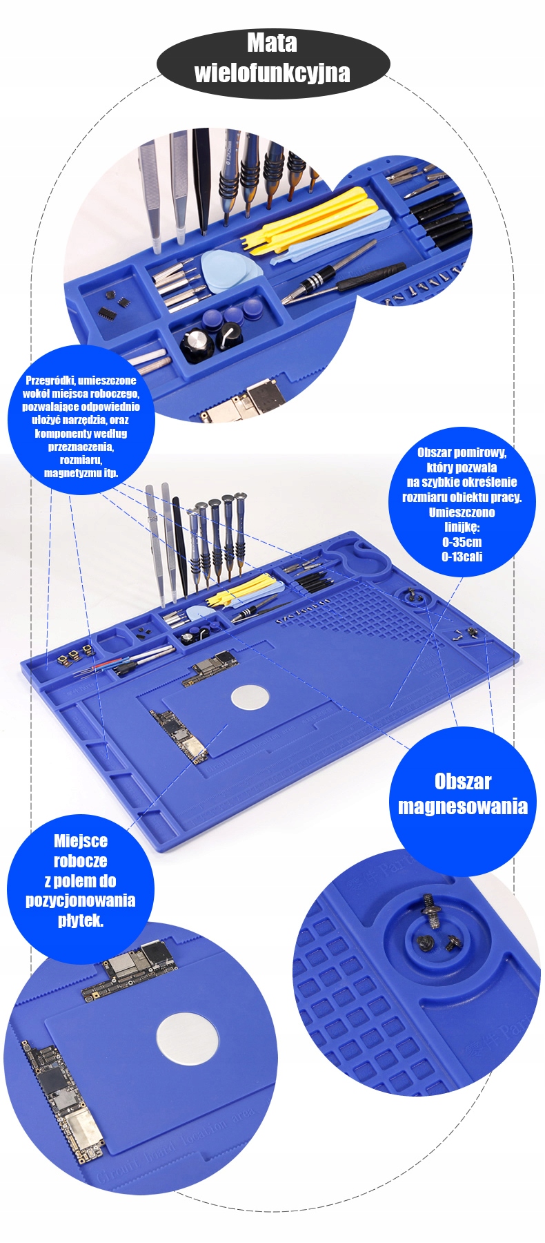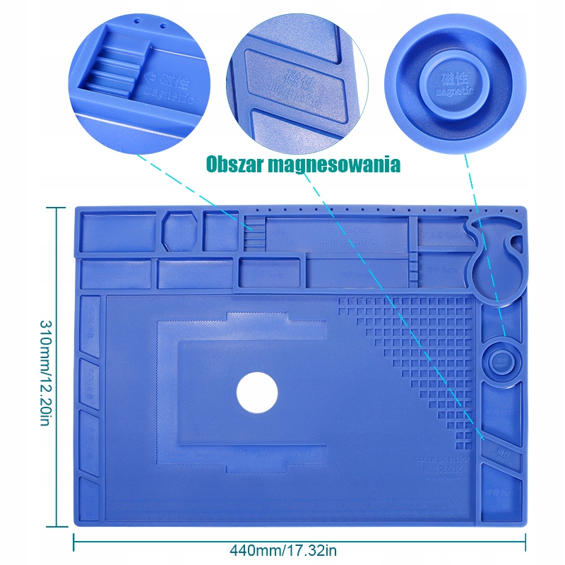 ✅ Wysokiej jakości mata silikonowa z wyprofilowanymi przegródkami poprawiająca komfort pracy w każdym serwisie