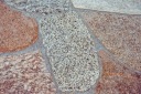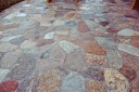 Plastry, płytki / mozaika Kashubian Gold Flat - cięta z naturalnego, polnego i płomieniowanego kamienia. Płyty posiadają antypoślizgową, naturalnie wybarwioną powierzchnię o różnych kształtach i wielkościach - co przedstawiają zdjęcia.