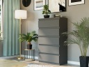 Stylowa komoda z kolekcji MODERN, stworzona dla ludzi, którzy cenią sobie nowoczesny styl i elegancję. Odnowi wnętrze każdej sypialni i salonu. Konstrukcja jest minimalistyczna ale solidna i trwała. Dzięki bez uchwytowym frontom szuflad komoda jest wygodna w użytkowaniu. Ergonomiczne wymiary komody zapewniają swobodę w umeblowaniu pomieszczenia.