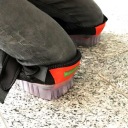Profesjonalne nakolanniki Grüntek wykonane są z Poliestru 600 Denier z miseczką wypełnioną spienioną gumą, która zmiękcza całą konstrukcję, zmniejszając obciążenie kolan. Miękka podstawa z dodatkową żelową, antyuderzeniową nakładką sprawia, że są bardzo wygodne i niezwykle bezpieczne w pracy. Dostosowują się do kształtu kolana, nie ślizgają się na podłodze z płytek czy innych laminatów. Dla wygodnego użytkowania, nakolanniki zapinane są na 4 paski z tyłu kolana.
