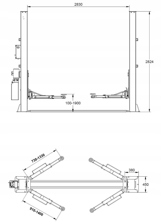 Dwukolumnowy podnośnik elektrohydrauliczny firmy ELPRO o udźwigu 4 tony.
