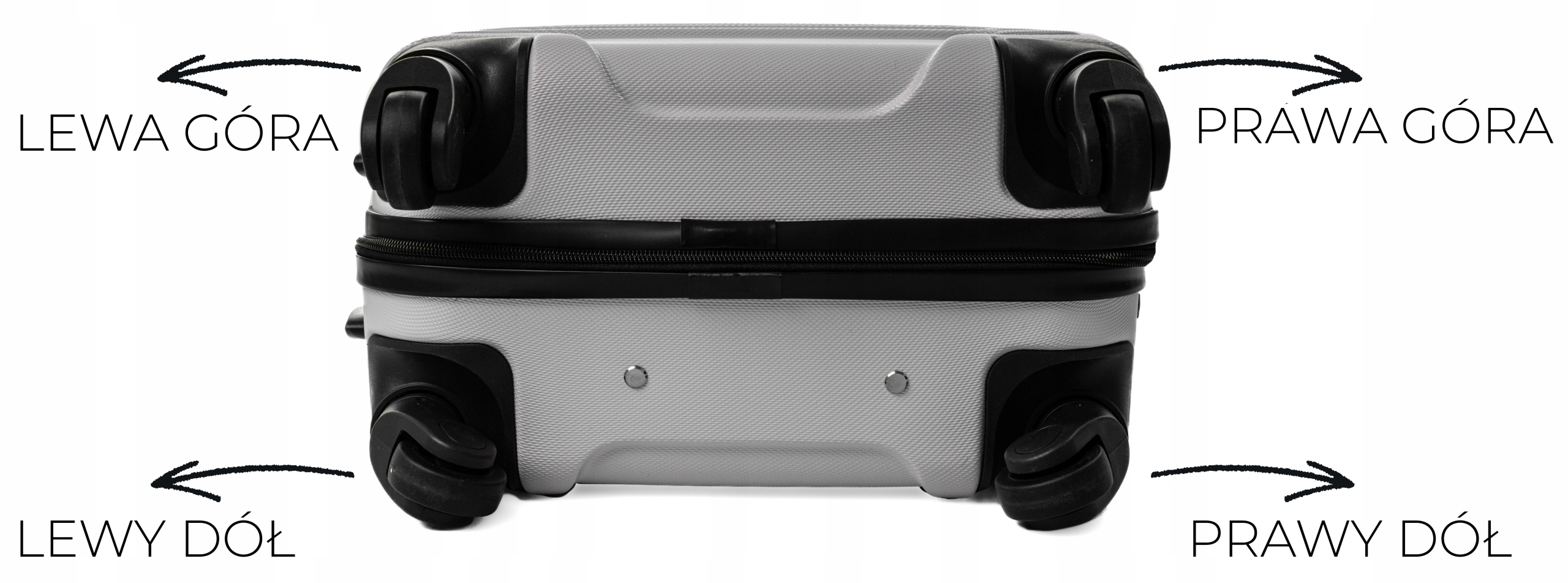 Aby poprawnie określić położenie kółka należy walizkę położyć stelażem do podłoża.