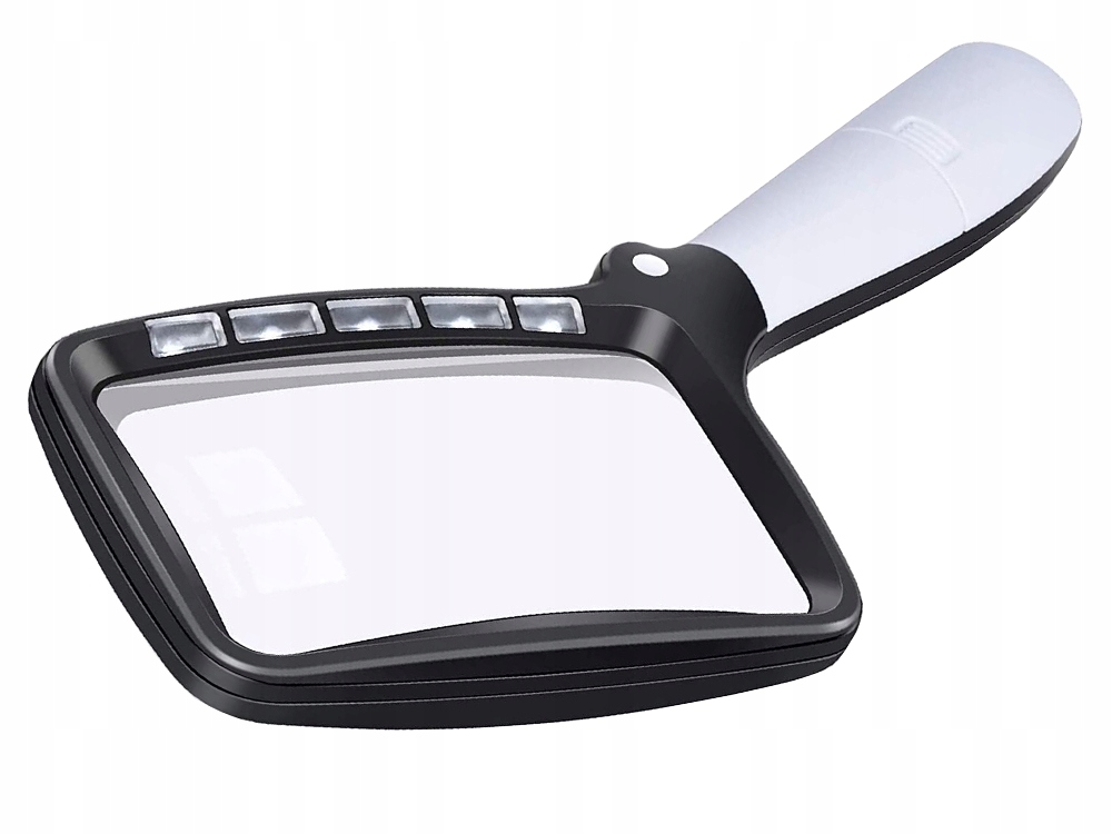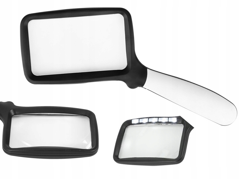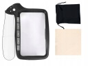 Lupa z dużą soczewką posiada przybliżenie 3X oraz mocne ledowe podświetlenie