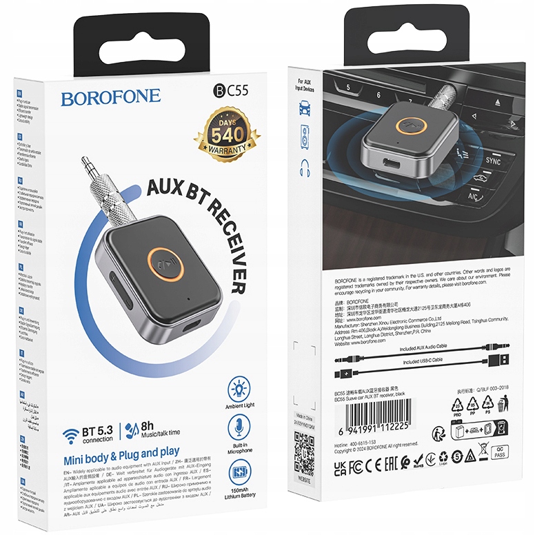 Producent i model: Borofone BC55 czarny 12225 odbiornik dźwieku BT AUX Suave