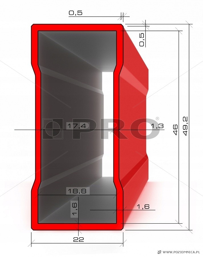 • Mocowanie libelli zaprojektowane tak, by wycięcie profilu było jak najmniejsze.