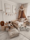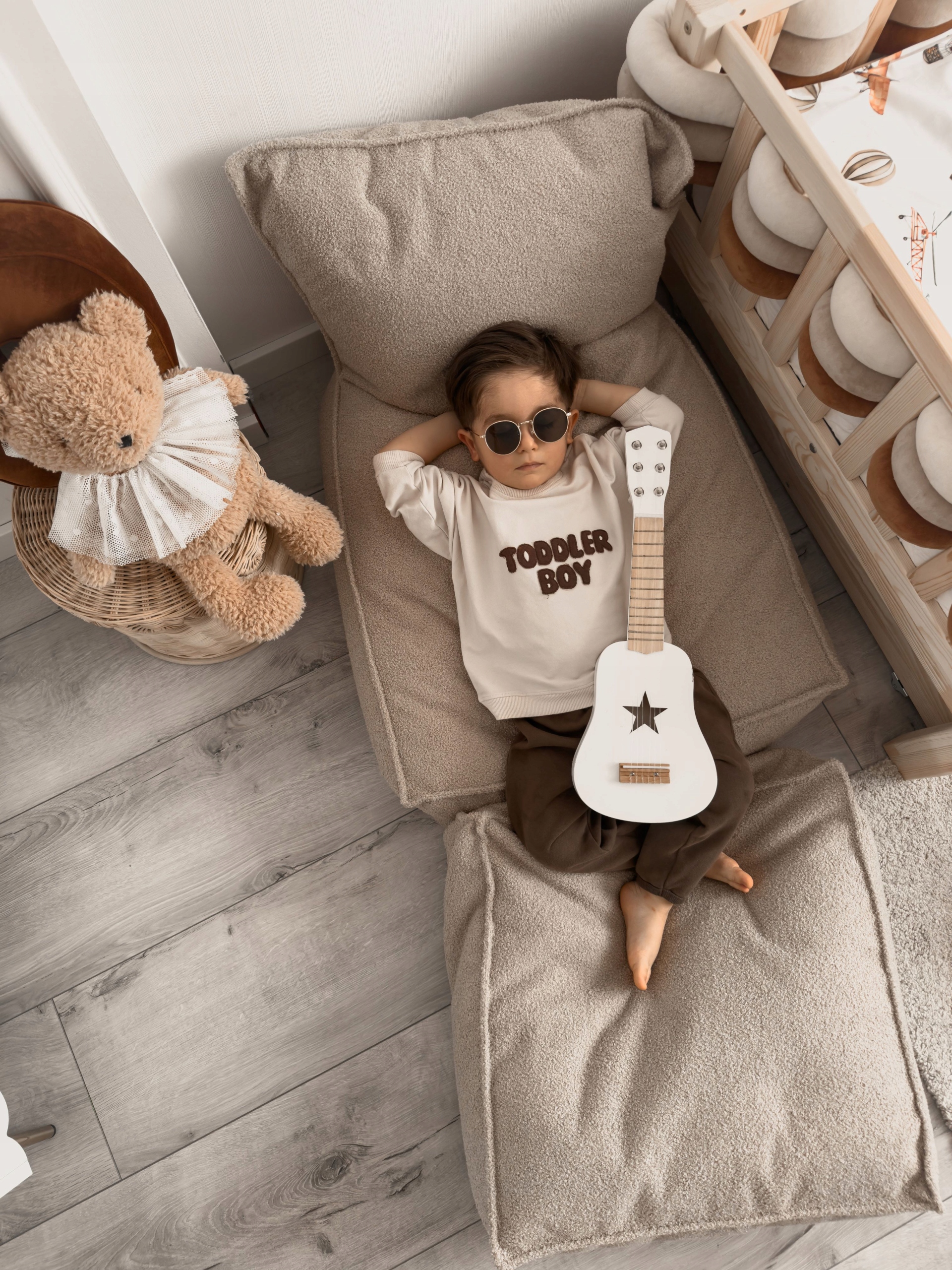 Twoje dziecko siada wygodnie na swojej nowej pufie Boucle od Monio for Kids – miękkiej jak chmurka i bezpiecznej w każdym calu.