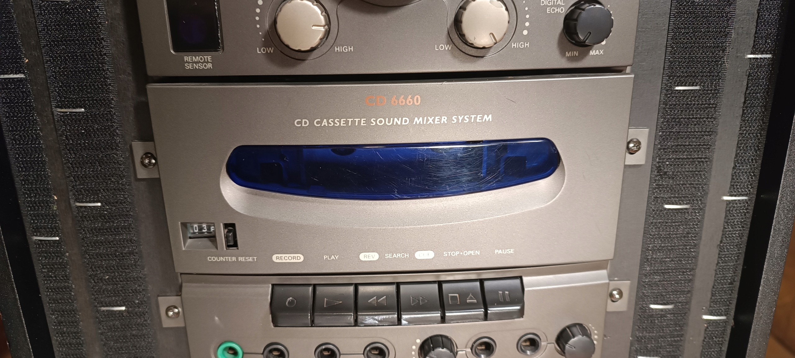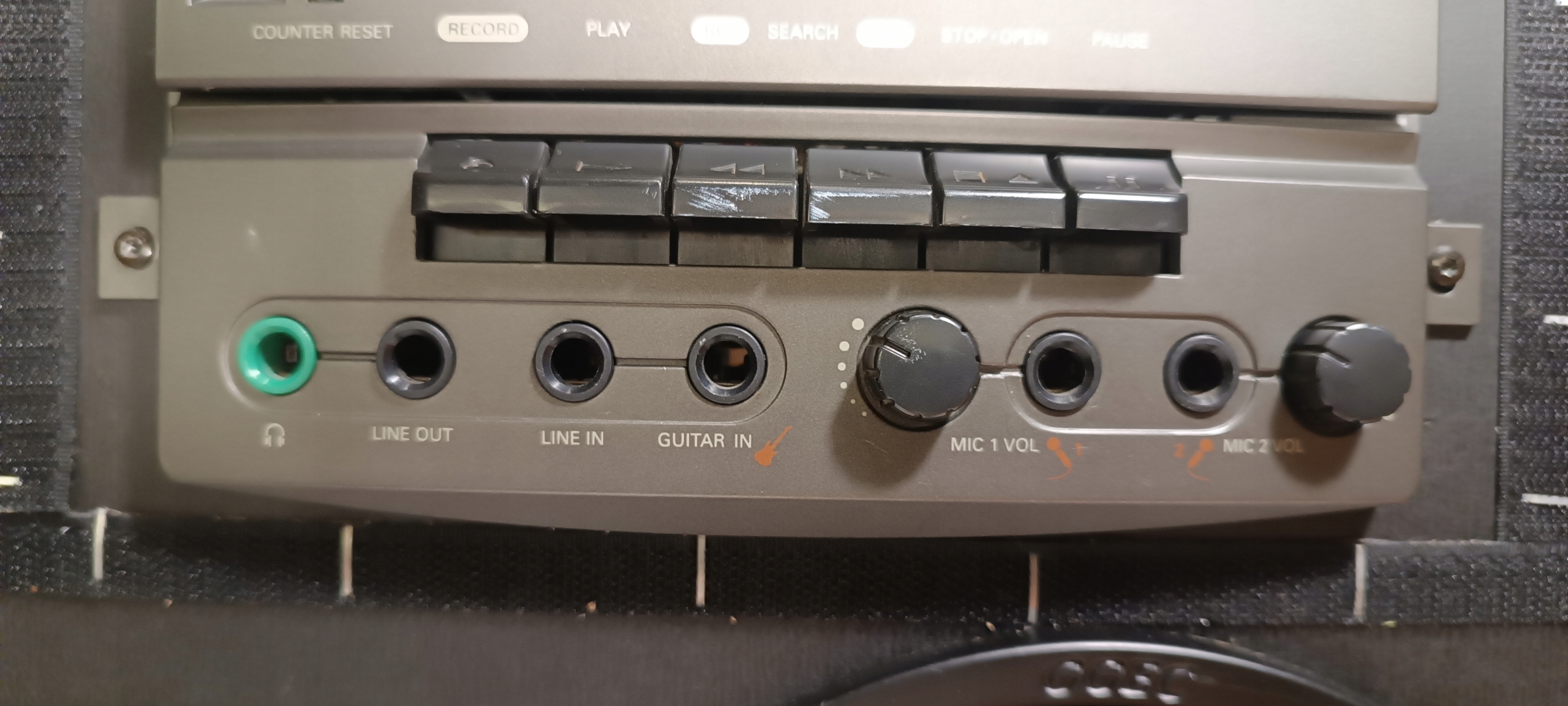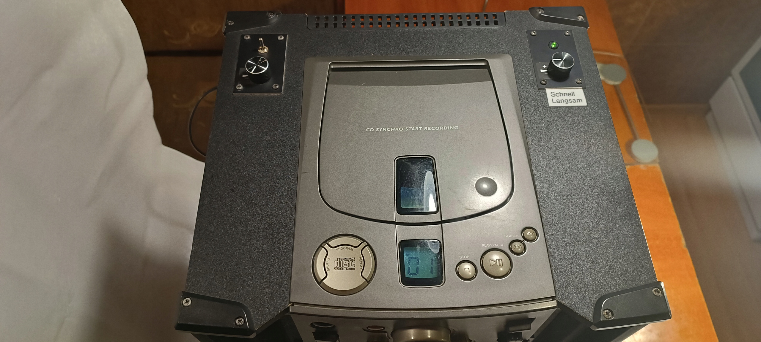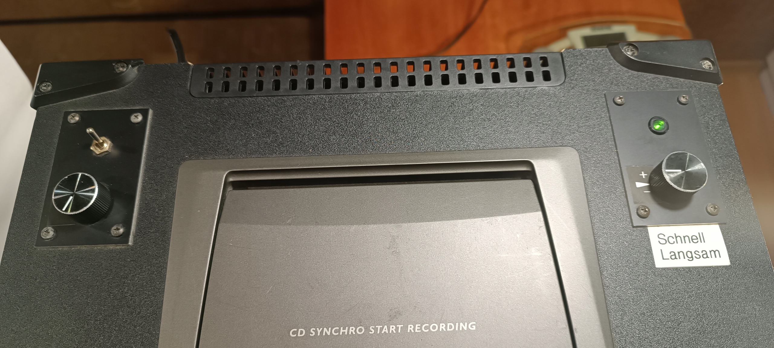 3 potencjometry od przyspieszania i zwalniania odtwarzanej muzyki z CD i magnetofonu. Podbicie basu.