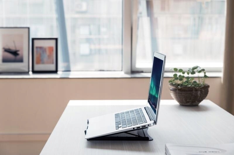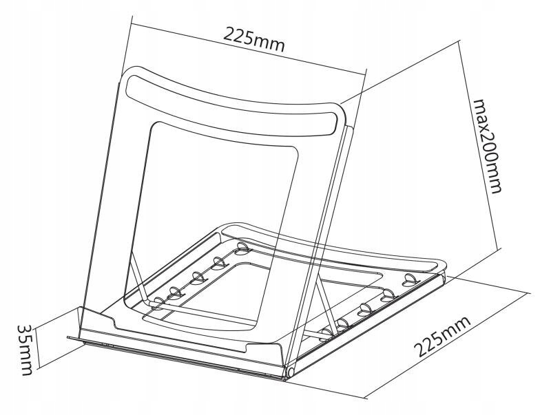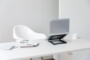 Podstawka przeznaczona do laptopów lub tabletów 10 - 15 cali. Posiada 5 poziomów wysokości oraz antypoślizgowe podkładki na spodzie. Została wykonana ze stali. Waga: 600 g.