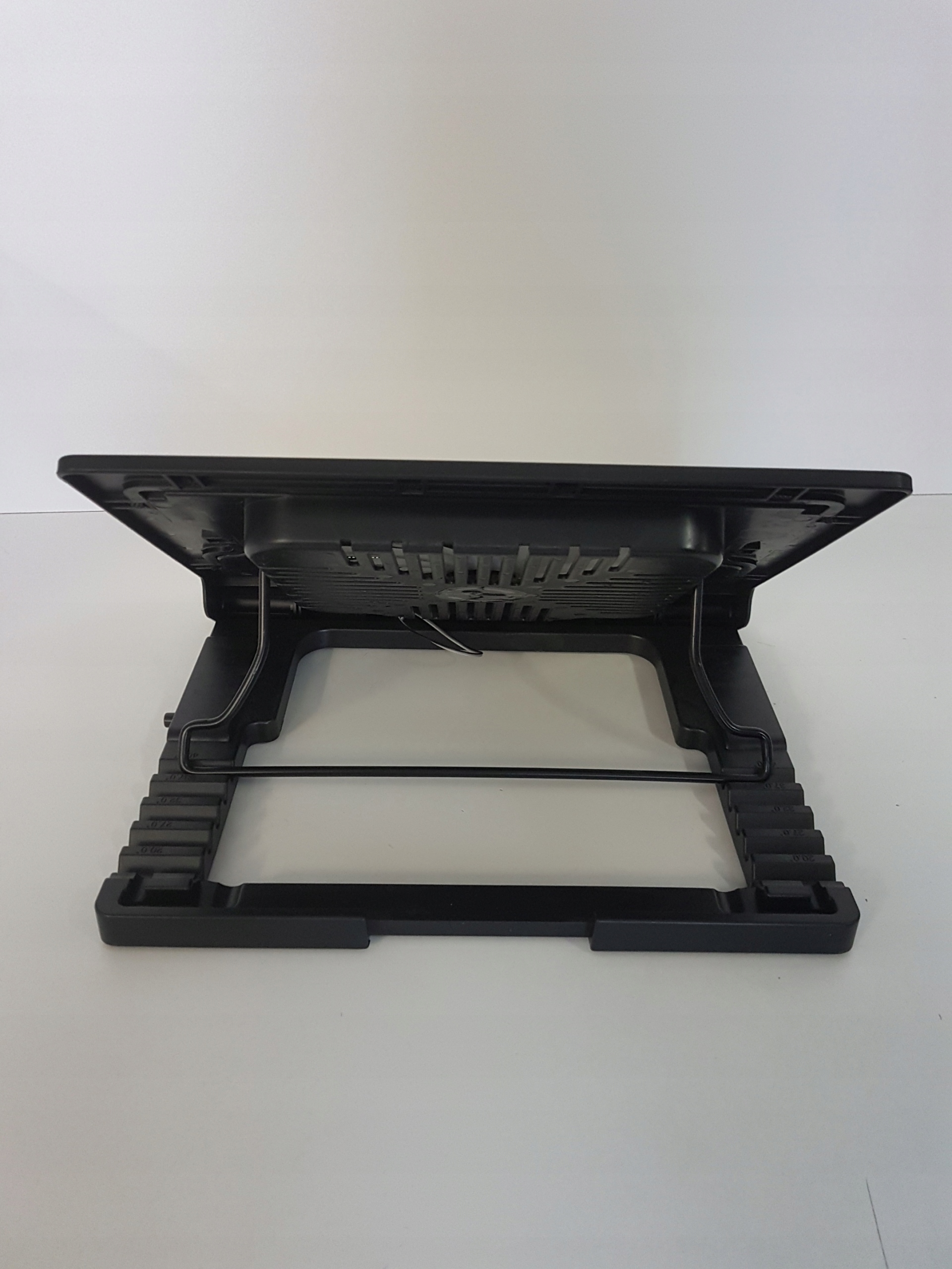 Możliwość wyboru kąta nachylenia w 6 krokach od 0 do 40 stopni dla lepszej ergonomii. - Niezwykle cichy wentylator Tacens 180 mm (12 dB). - 2 porty USB2.0 (1x dane USB. 1 wejście zasilania wentylatora USB) - Kompatybilny z laptopami do 17 ”.