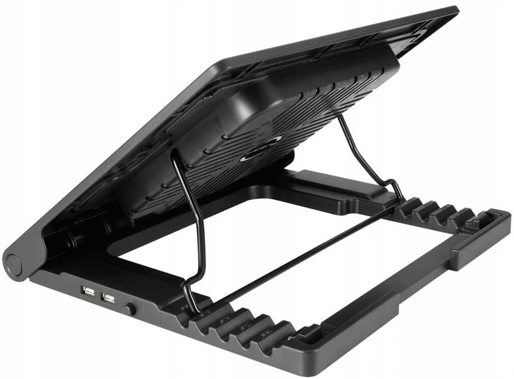 Możliwość wyboru kąta nachylenia w 6 krokach od 0 do 40 stopni dla lepszej ergonomii. - Niezwykle cichy wentylator Tacens 180 mm (12 dB). - 2 porty USB2.0 (1x dane USB. 1 wejście zasilania wentylatora USB) - Kompatybilny z laptopami do 17 ”.