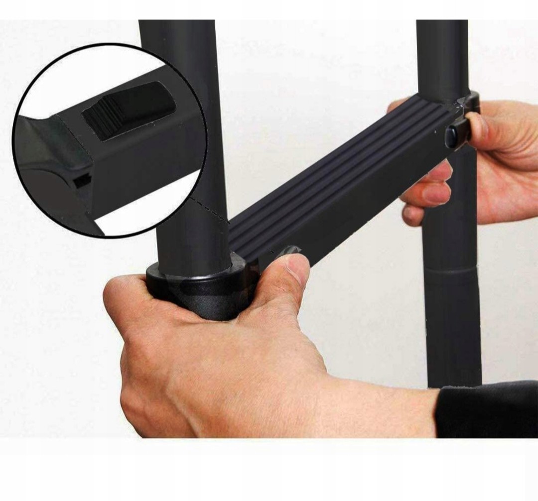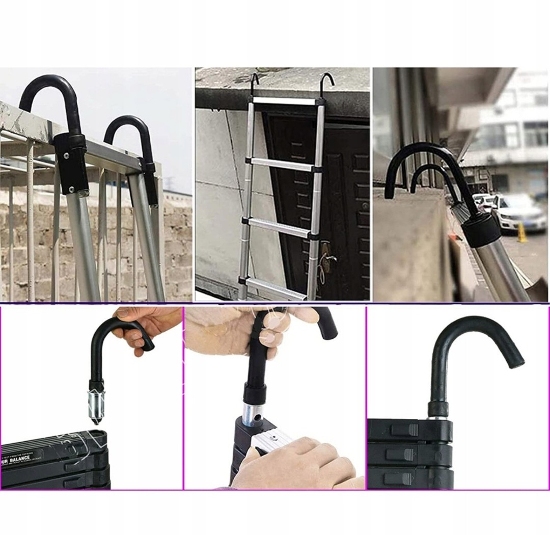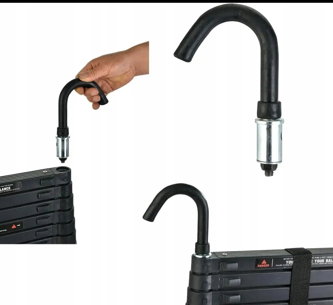 Bezpieczny i kompaktowy, z czarnym antypoślizgowym gumowym rękawem na spodzie drabiny i zdejmowanym haczykiem zapewniają podwójne bezpieczeństwo podczas wspinaczki po drabinie teleskopowej.