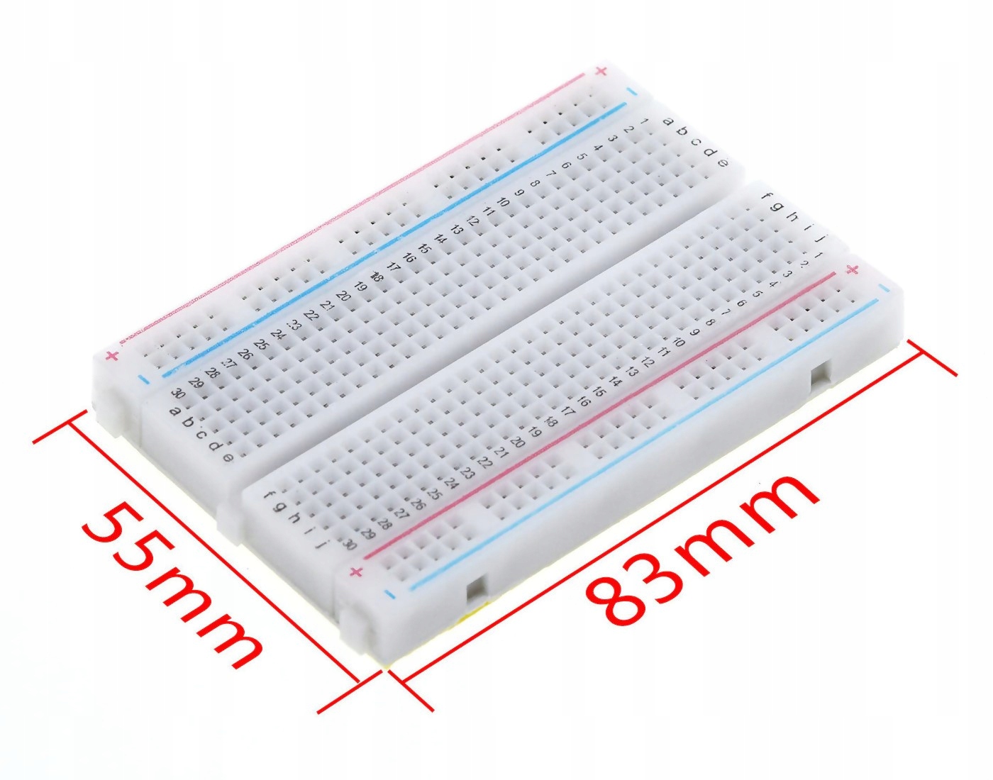 ✔️ Płytka prototypowa pozwala budować układy bez lutowania, dzięki czemu nie potrzebujemy nawet lutownicy by nauczyć się elektroniki. Układy mocuje się przez włożenie w otwory na płytce, a łączy się za pomocą przewodów.