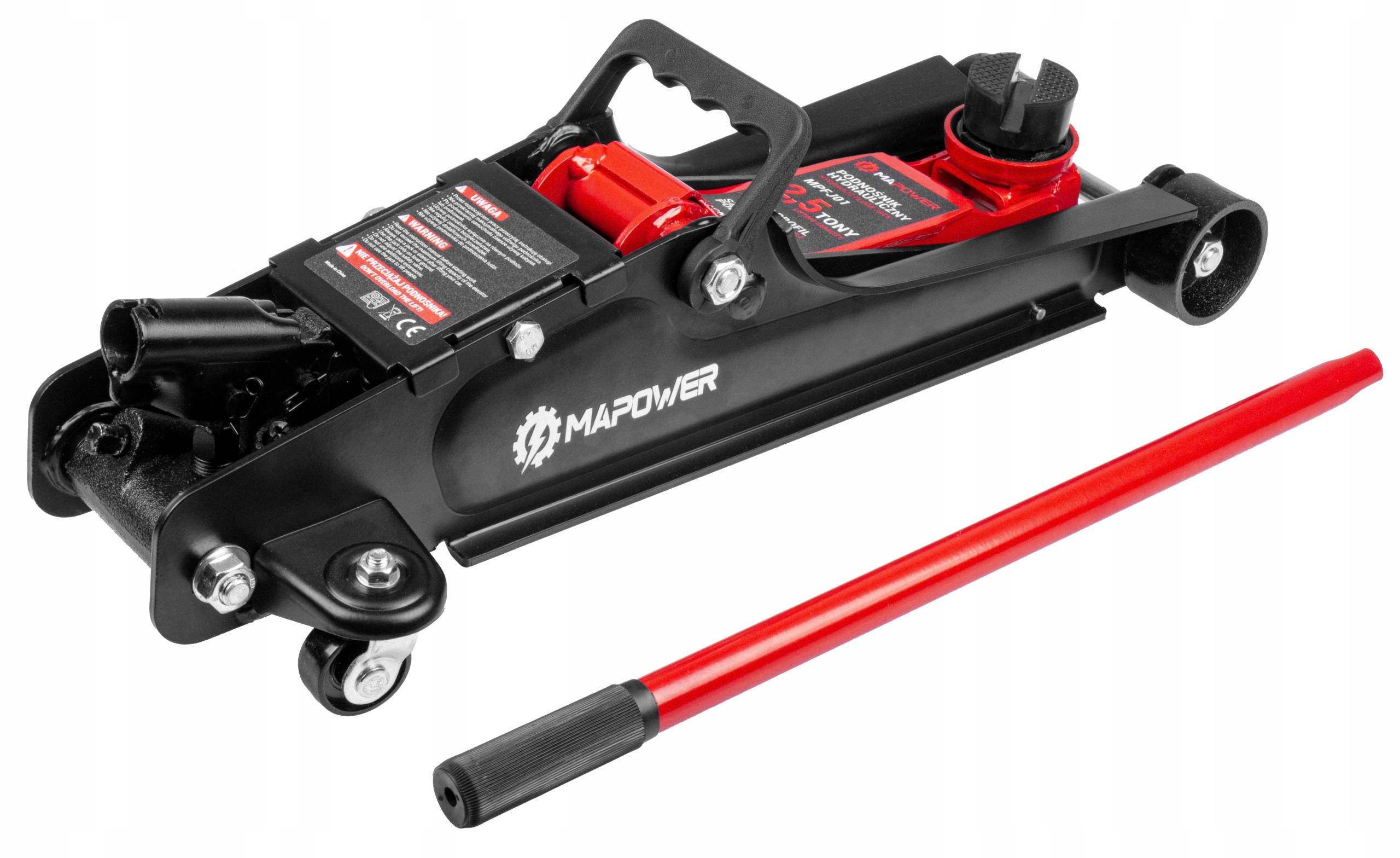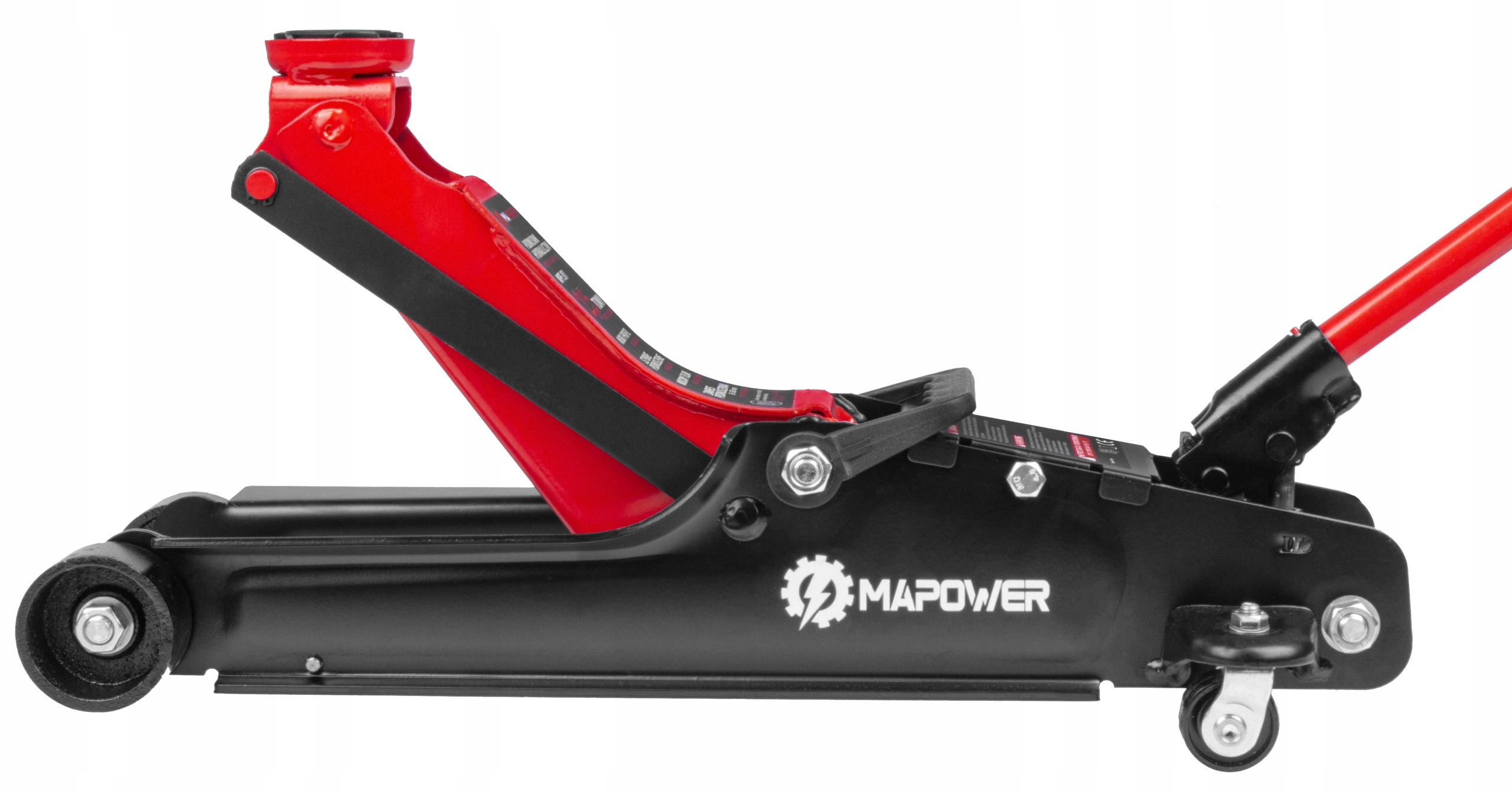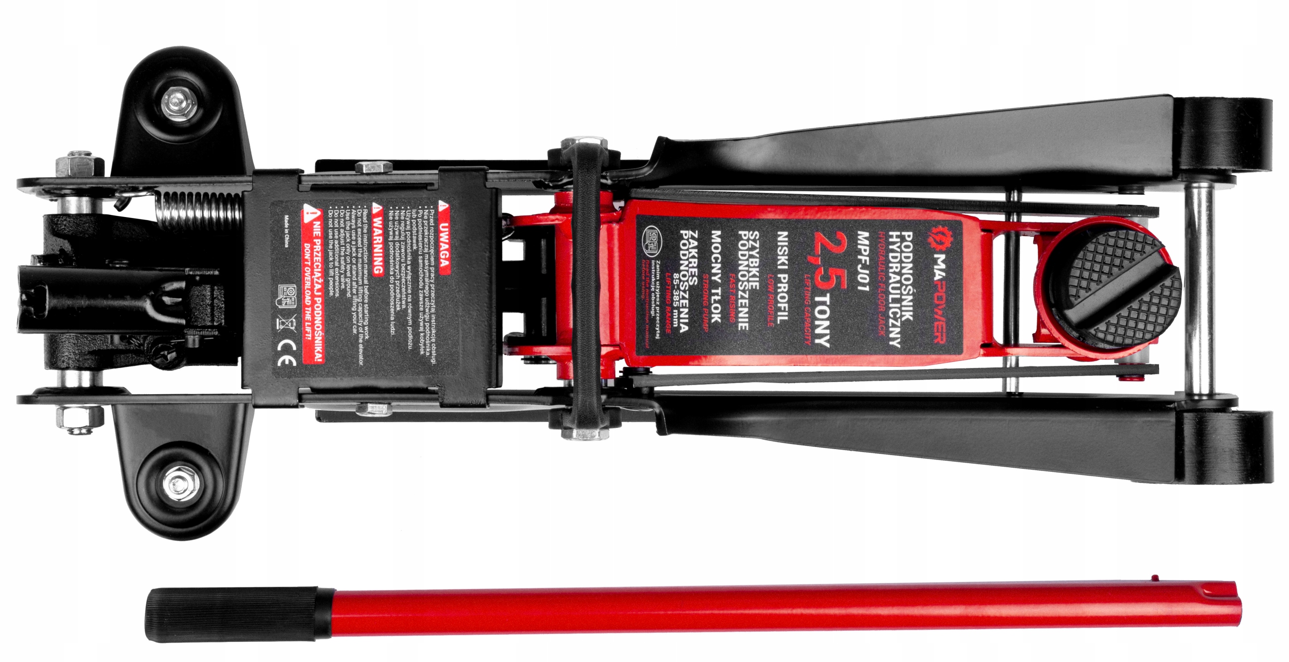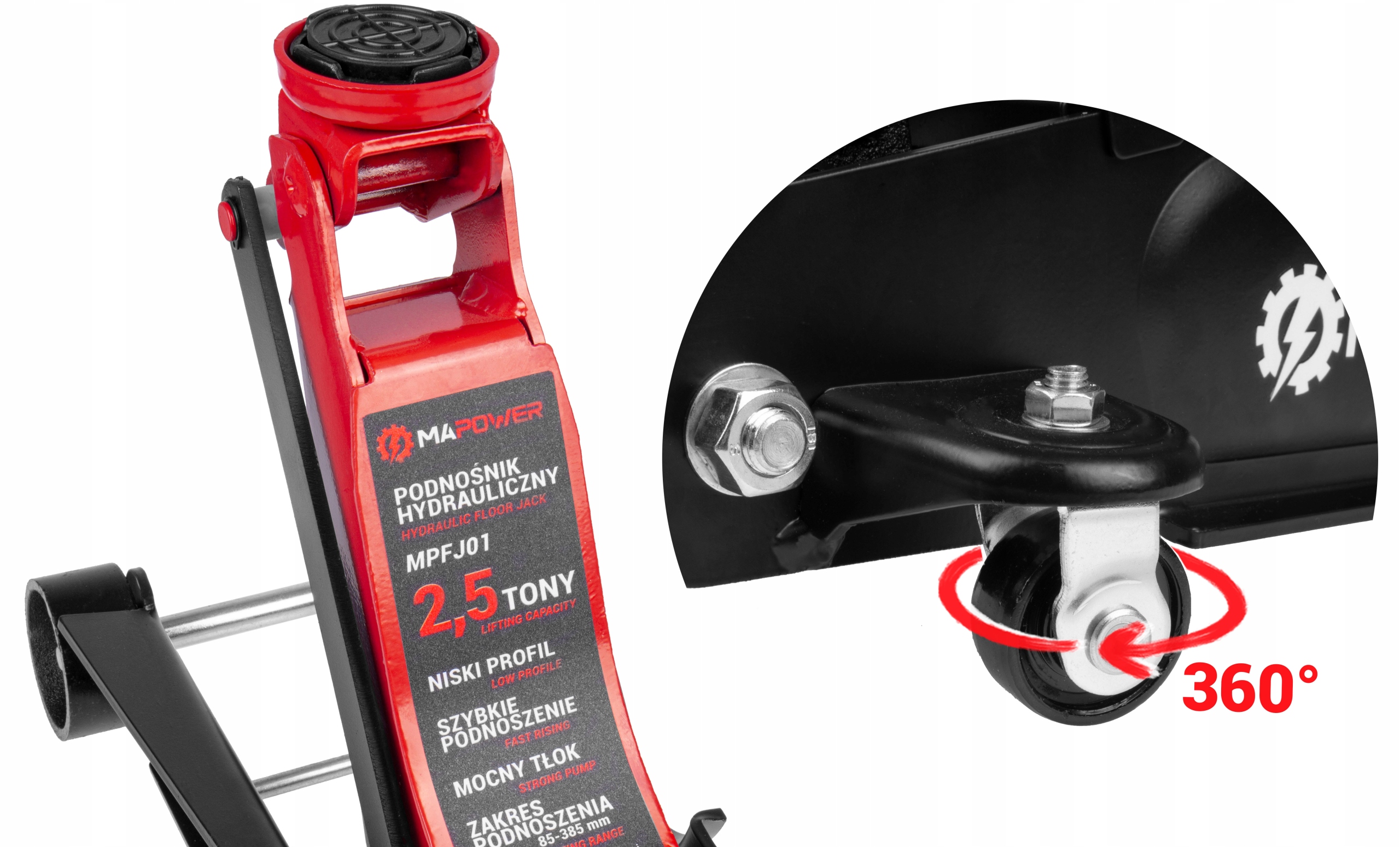 ►MAKSYMALNA WYSOKOŚĆ na jaką podnośnik hydrauliczny MAPOWER jest w stanie podnieść pojazd to 385 MM. Bez problemu wymienisz koło, czy sprawdzisz stan podwozia.