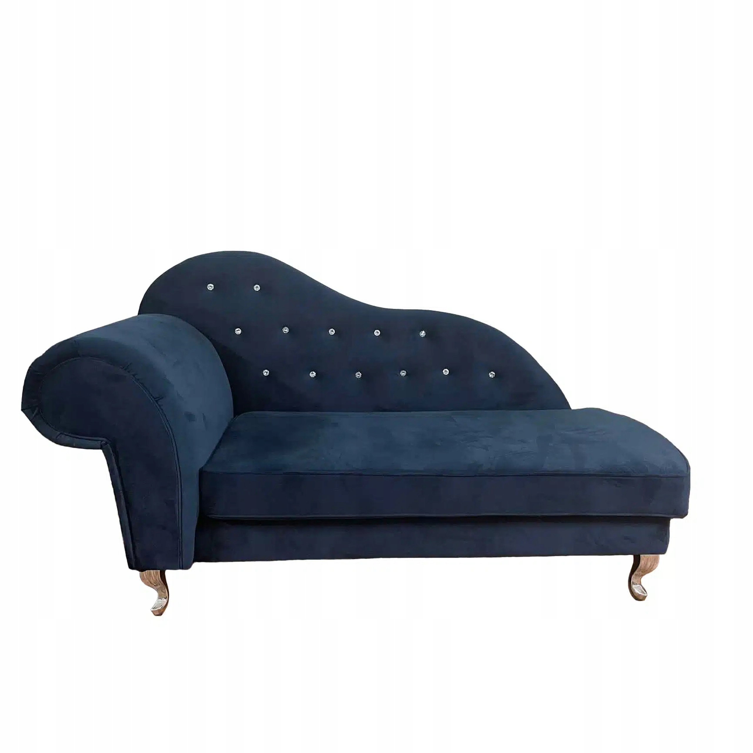 Oparcie szezlonga zdobione jest eleganckim pikowaniem, które dodatkowo wzbogacone zostało błyszczącymi kryształkami. Te subtelne detale przyciągają wzrok, dodając szyku i wyrafinowania każdemu wnętrzu. Kryształki odbijają światło, tworząc efektowną grę refleksów, co sprawia, że mebel prezentuje się spektakularnie, zarówno w świetle dziennym, jak i wieczornym oświetleniu.