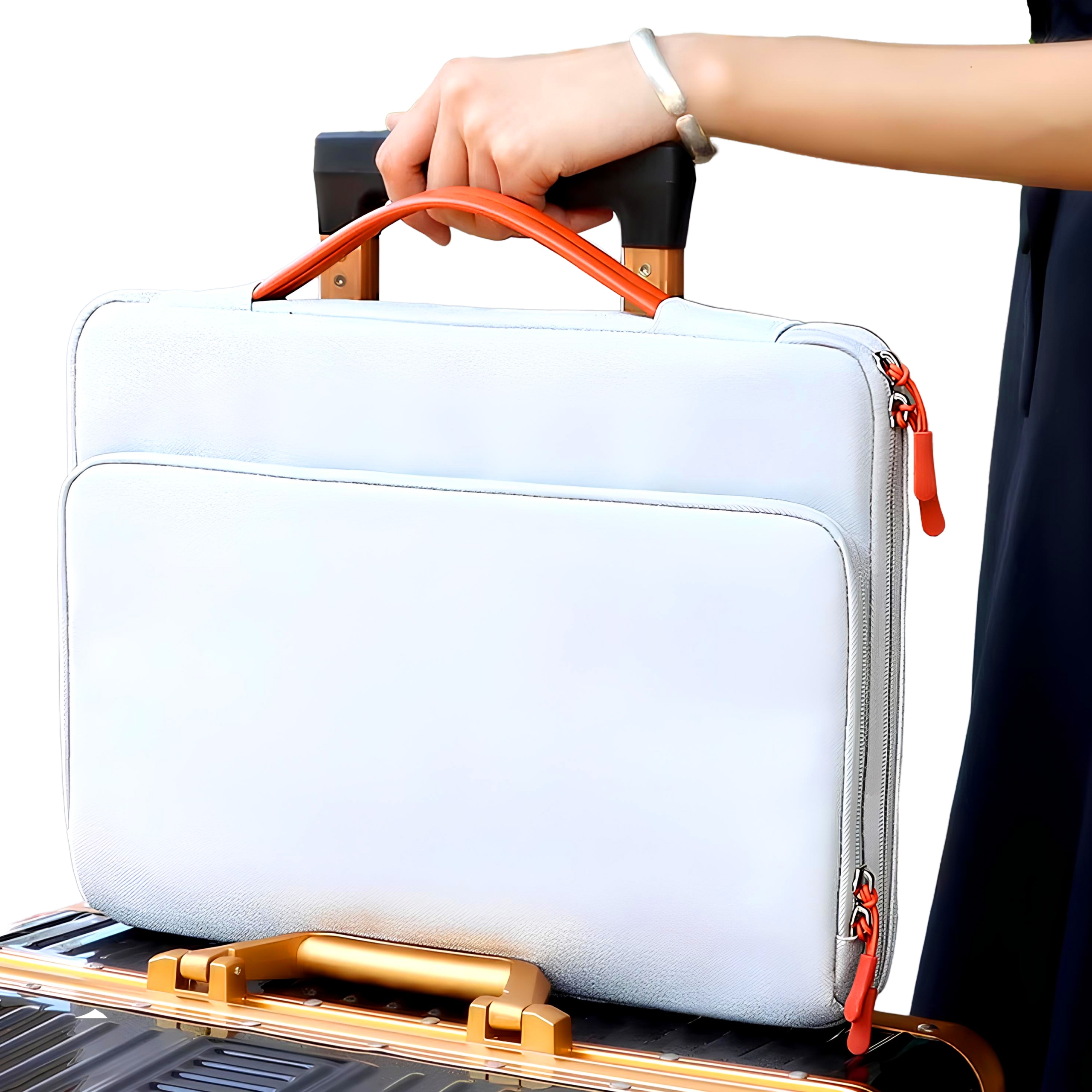 MOŻLIWOŚĆ PRZYMOCOWANIA POKROWCA - za pomocą paska mocującego znajdującego się z tyłu torby, możesz umieścić ją na stelażu walizki podróżnej