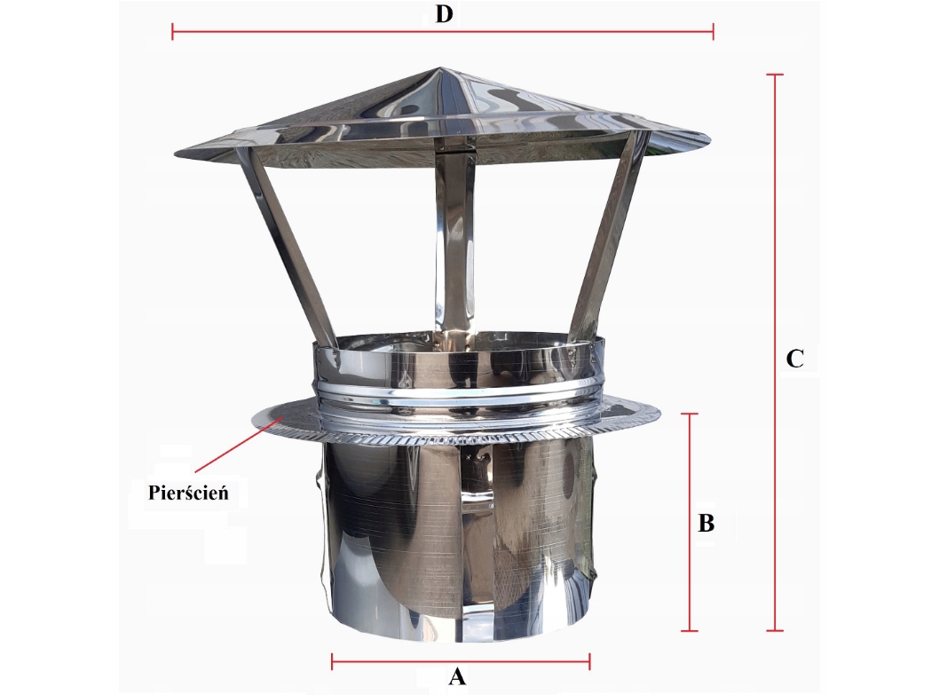 Wykonany z blachy nierdzewnej kwasoodpornej. Zastosowanie nasady ma na celu ochronę wewnętrznej części komina przed opadami atmosferycznymi, poprawienie estetyki zakończenia systemu komina oraz odstraszenie potencjalnych intruzów np. ptaki.