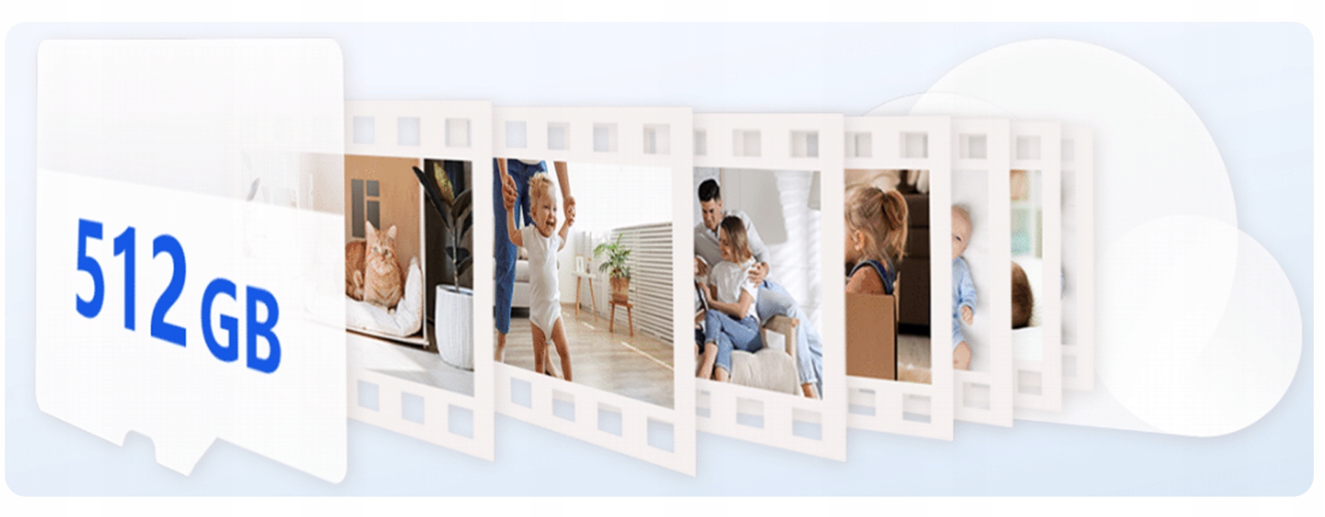 ✅ Obsługa kart pamięci MicroSD do 512 Gigabajtów, co pozwala na przegląd nagrań nawet do 14 dni wstecz