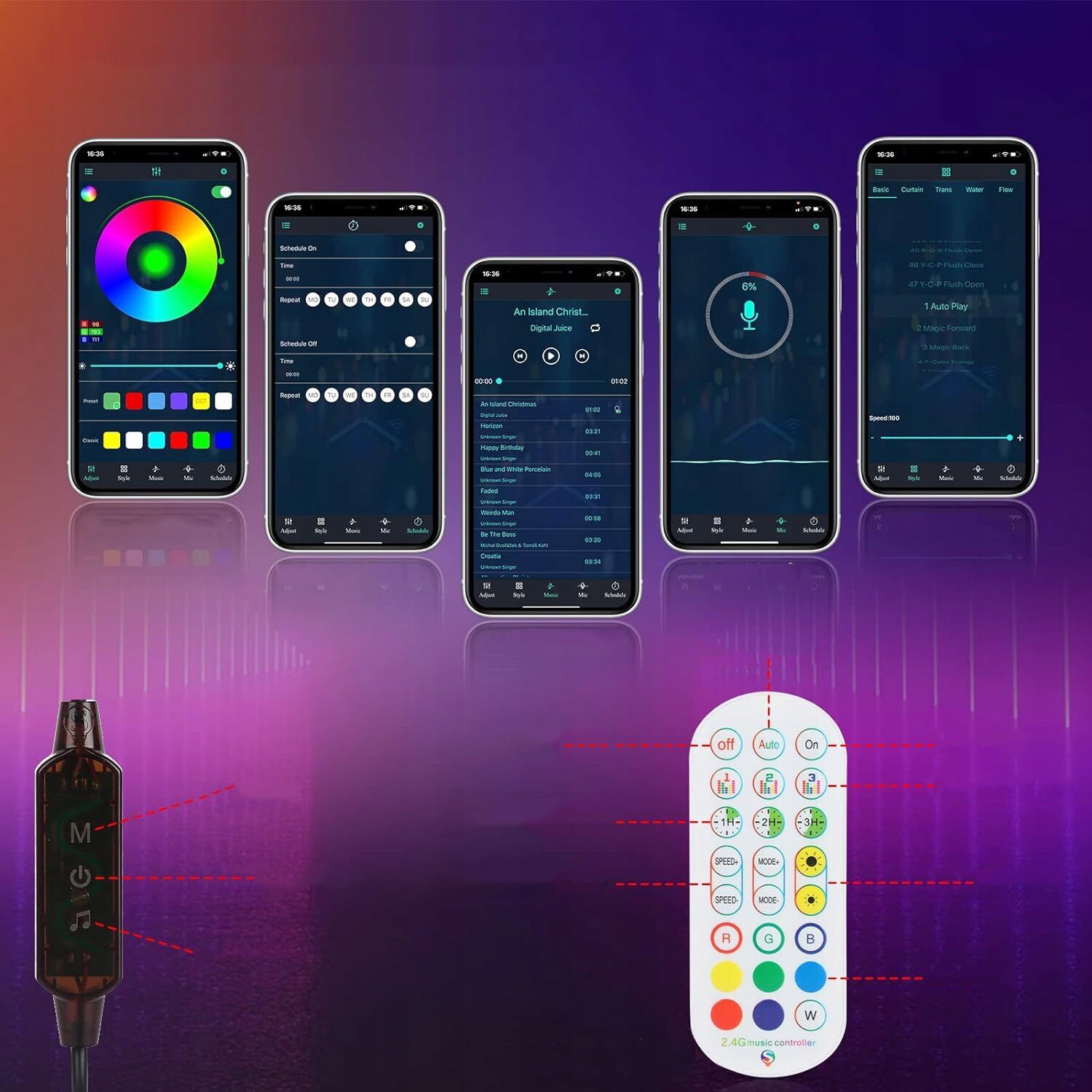✅ Sterowanie przez Bluetooth za pomocą aplikacji: w porównaniu do sterowania przyciskami, sterowanie aplikacją poprzez Bluetooth pozwala realizować bardziej różnorodne i swobodne sterowanie trybem oświetlenia. Łatwa w obsłudze funkcja timera. Dzięki tym funkcjom możesz jeszcze bardziej cieszyć się systemem oświetlenia Smart Home.