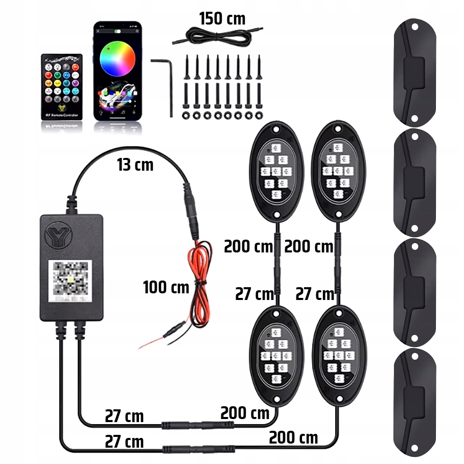 Zestaw oświetlenia podwozia jest idealny dla różnorodnych pojazdów, takich jak samochody osobowe, off-roadowe, SUV-y, motocykle, łodzie czy przyczepy. Można go zamontować pod pojazdem, w nadkolach, a także wewnątrz jako oświetlenie wnętrza.