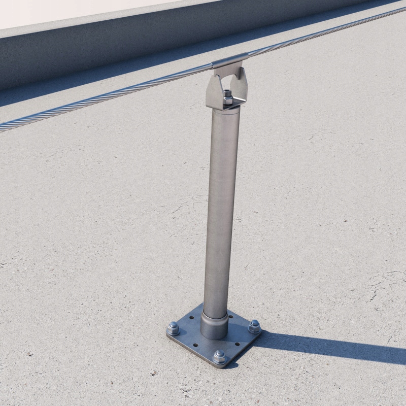 Słupek asekuracyjny Rothoblaas Tower 600 z powodzeniem można instalować w betonie za pomocą żywic poliestrowych lub kotew mechanicznych.