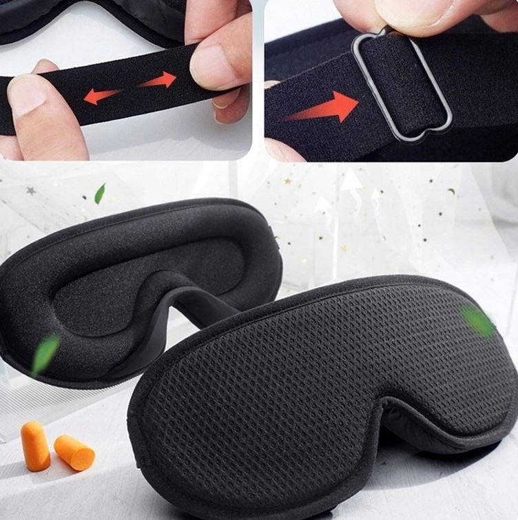 Maska zaciemniająca została wykonana z pianki z efektem pamięci. Dzięki temu dopasowuje się do każdego kształtu twarzy, zapewniając wygodę i komfort potrzebne podczas snu.