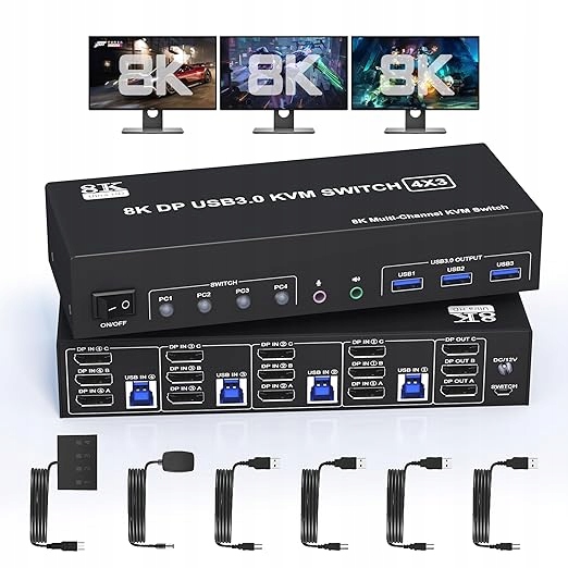 Код производителя KVM DisplayPort 8K 60Hz 3 monitory 4 komputer